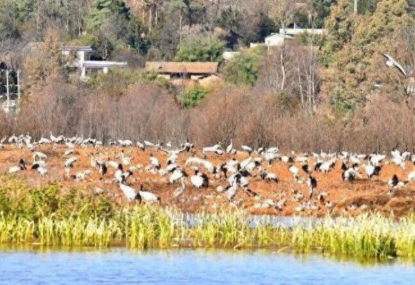 随着冬季来临,会泽黑颈鹤国家级自然保护区迎来大批越冬候鸟。近期,保护区水位为20年来最高,给黑颈鹤栖息带来挑战。保护区通过科学管理、技术赋能,保障了候鸟栖息环境,更实现越冬鸟类数量稳步增长,黑颈鹤数量达1300余只,创历史新高。