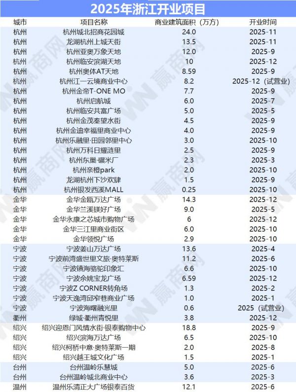 浙江这37个项目开业,杭州占领“半壁江山”