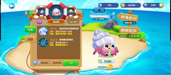 寄居蟹是充值12元礼包送的一个宠物,由于我之前充了,现在无法找到那个页面,只要没有充过的,在礼包里面找找。这个宠物的技能是复制鱼宝,等级越高,复制的位置越多,产生的鱼宝越多,当然需要手动点击需要复制的鱼宝才能复制,一键收获的法,寄居蟹会随机复制鱼宝,从而不能复制自己想要的鱼宝,我推荐把他放在自己最需要的鱼宝的鱼池里面,这样有时候上线也能点击复制鱼宝,虽然鱼宝不多,但是积少成多嘛。复制一次需要等待冷却时间,冷却时间过了才能继续复制。
