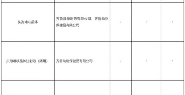 批准齐鲁晟华制药有限公司等2家单位申报的头孢噻呋晶体等3种兽药产品注册,发布产品工艺规程、质量标准、说明书和标签,自发布之日起执行。