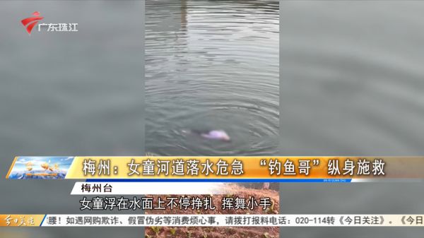 梅州:女童河道落水危急 “钓鱼哥”纵身施救
