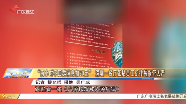 “两小时不回群消息扣20元” 深圳一餐厅张贴员工纪律被指管太严