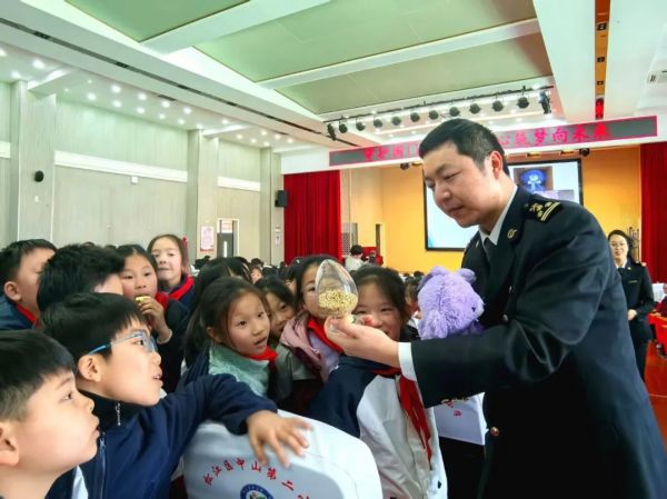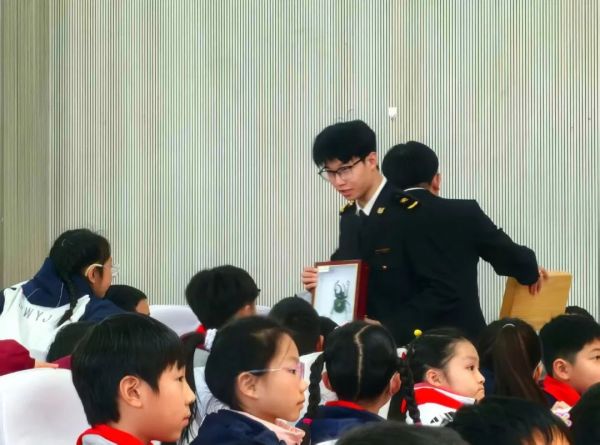 “国门生物安全是国家安全的重要组成部分,随着全球化进程加快,外来有害生物入侵风险与日俱增,普及生物安全知识,增强青少年防范意识,势在必行。此外,我们也希望通过宣讲,在孩子们心中种下守护国门安全的种子,携手家庭与社会,‘小手拉大手’,共同防范有害生物入侵。”松江海关物控查检三科副科长胡嘉晶介绍,此次 “国门安全进校园”课程共包含多个板块,除“‘异宠’与国门安全小课堂”外,还包括“探秘国门奥秘”“解密生物入侵”等内容。