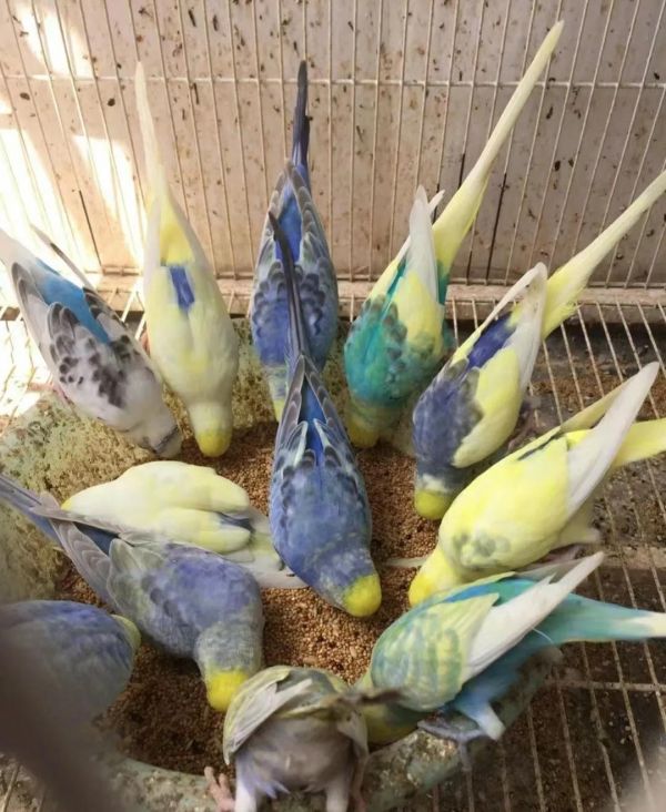 ④玉头型:两种,一种头部为黄色,其他部位羽毛为绿色;一种头部为白色,其他部位体色为淡蓝色。