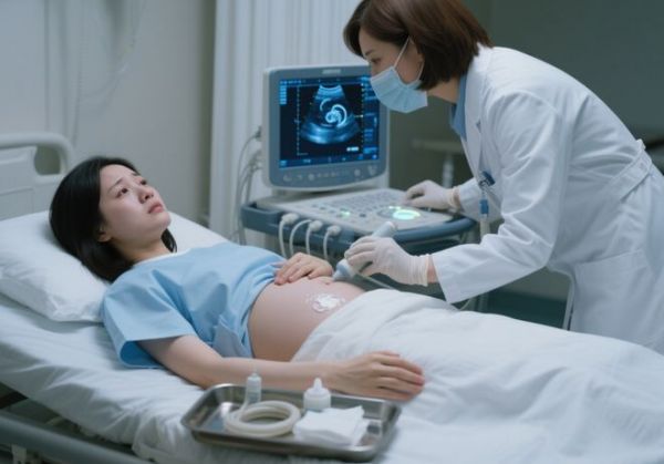 B超室里光线昏暗,只有仪器的屏幕散发着蓝白色的光芒。医生是个中年女性,看起来很有经验。