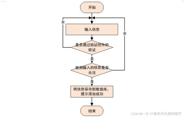 用户可以添加信息,内容没有问题之后按下确定键就添加成功了。添加信息的流程图如图3-4所示: