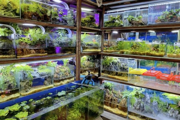 走入深处,一条小巷映入眼帘,对于喜欢小动物的小朋友而言,这里就如同“奇妙博物馆”。鱼儿在水族箱中轻灵地游弋,五颜六色的水草随着水波摆动,还有其他龟类蟹类等多种类型的水族生物。