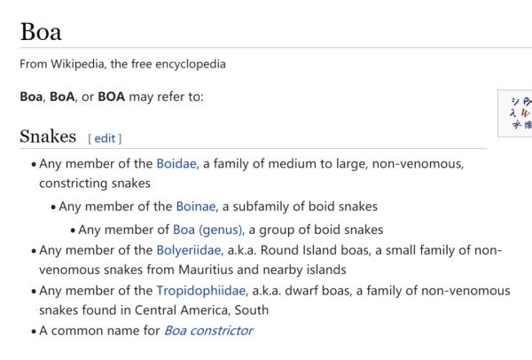 维基百科中对python(左)与 boa(右)的注解 (图片来源:维基百科)