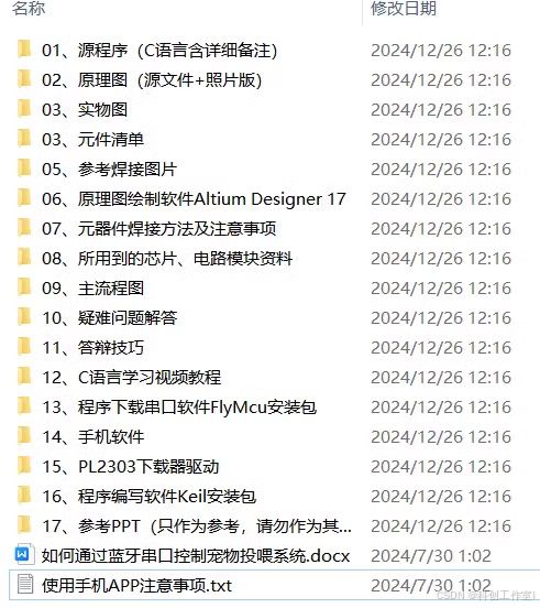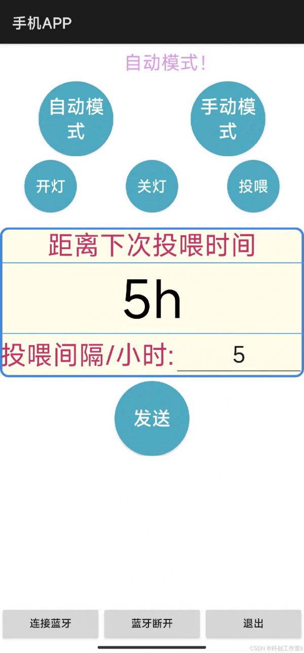 (四)蓝牙通信与远程控制通过蓝牙模块实现STM32单片机与手机APP之间的无线通信。用户可以通过手机APP远程控制投食、开关灯及模式切换等功能,实现智能宠物喂食系统的便捷操作。
