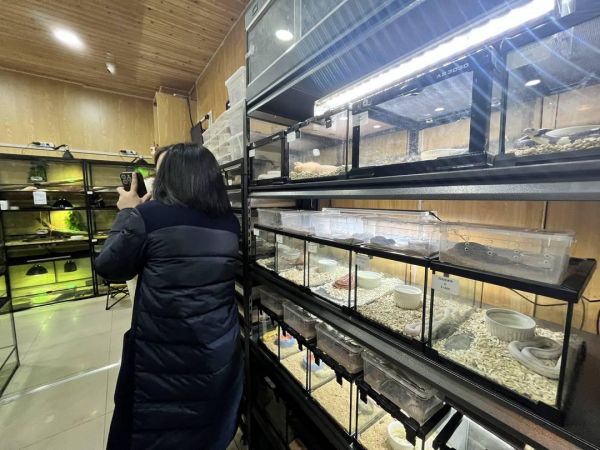 蛇宠的火爆除了体现在体验馆,在宠物消费市场也很明显。26日,记者来到位于青石桥附近的宠物市场。一家综合宠物店内,店主专门将蛇宠摆放在进门一侧的显眼位置,“春节过后来问蛇的人很多,适合新手养殖的玉米蛇最好卖。”店主说。而在另一家专门销售异宠、爬宠的店内,上百个透明箱体整齐排列,形态、颜色各异的宠物蛇在箱内蠕动,一旁有两位顾客正在挑选。