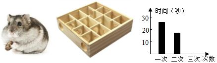 仓鼠活泼可爱,形态可掬,是受人喜爱的玩赏宠物,为研究动物的行为,某同学周末利用家养仓鼠和网购的“迷宫'玩具开展了“仓鼠走迷宫获取食物”的实践活动并如实记录了实验数据,请思考回答: 次数 第一