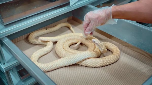 现在正是基地最忙碌的阶段,因为蛇群刚刚冬眠结束,喂食、清洁、观察排泄物、交配等环节,都需要工作人员一再小心。“宠物蛇也像人一样,很有个性,我们要清楚每条蛇的食性,针对性地喂食。”这些琐碎的工作背后,是钱甚宇对每一个细节的极致追求。