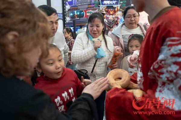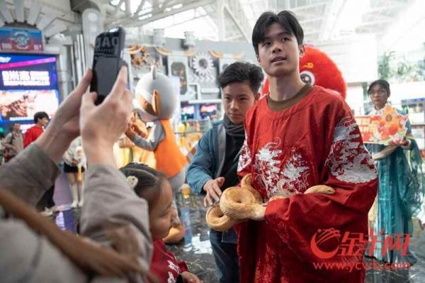1月31日大年初三,广州正佳广场雨林生态植物园外上演趣味一幕:一条金黄色的牛蛇在工作人员陪同下“出gai”巡游,与游客零距离互动,成为新春最特别的“拜年嘉宾”。