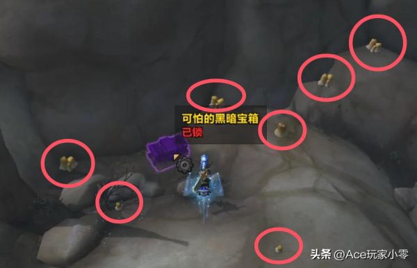 前往喧鸣深窟,坐标58.9, 30.3,地上有一个“可怕的黑暗宝箱”。如果是开着的,点击打开就可以直接获取了。但如果它是锁着的,你需要一口气把这附近的蜡烛全都点亮,才能解锁这个箱子。从左到右或从右到左都行,选一个方向点过去,动作要快,不然先点的蜡烛就灭了。