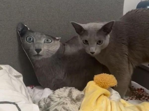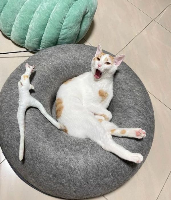 有些则直接无视,继续睡自己的觉,完全不被这个所谓的“分身”打扰;还有像那只暹罗猫一样,将其视为新玩具或磨牙工具,抱着又啃又咬。