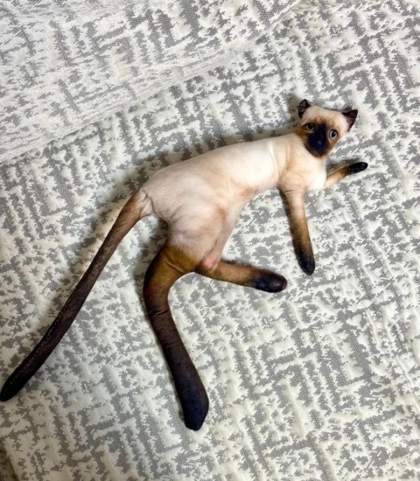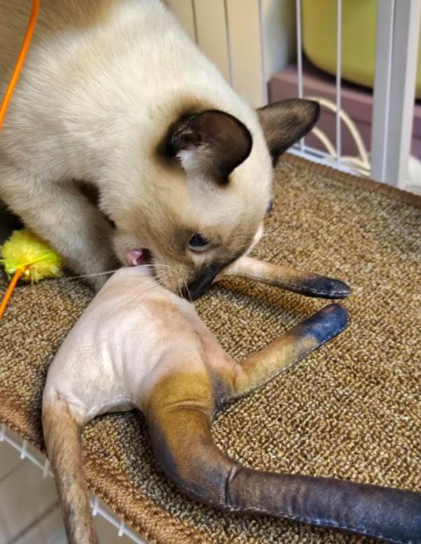 一只暹罗猫也获得了专属定制,黑色的脸部和爪子特征被保留下来,尽管整体形态依然逃不过“干瘪”的命运。