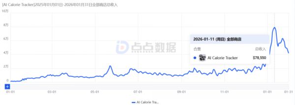 2025年1月1日至2026年1月31日,BitePal收入变化。图源:点点数据