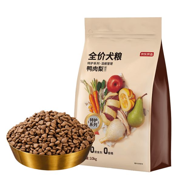 京东京造的狗粮则主打鸭肉梨配方,含有≥72%的鲜肉,采用先进的酶解技术锁住营养,适合中大型犬及小型犬。它不仅能满足狗狗的日常营养需求,还能有效清热祛泪痕,适合爱出汗的犬种。