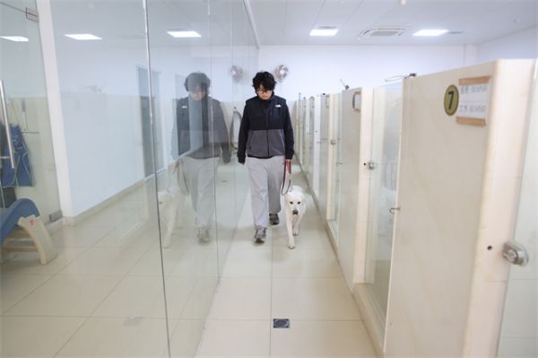 2023年12月,首批3只辅助犬哈雷、哈利、伊莉在这里完成培训并毕业,2024年4月正式上岗。2025年1月,又有啾啾、尔康、丹丹毕业交付服务。这次毕业的舒也、舒而、吉尔已是第三届毕业生。