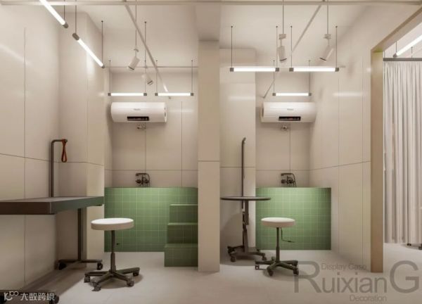 SAFETY墙面与地板采用温和的浅色调,营造出一片纯净无瑕、整洁有序的空间意境。绿色瓷砖的精致点缀,如同一曲视觉的变奏,为空间增添了几分层次与节奏之美。整体巧妙融合了简洁与实用的理念,体现了对宠物的深切关怀,也彰显了生活品质的雅致追求。