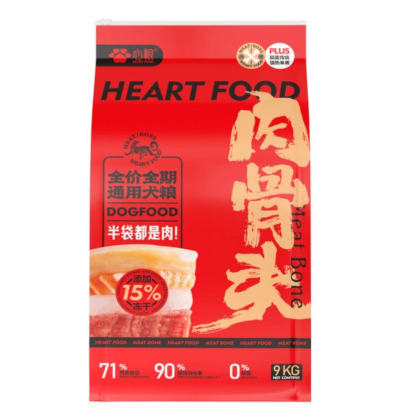 心粮狗粮适合小中大型犬,包含71%动物性原料,添加整根牛软骨,营养丰富,且0%谷物,适合挑食的犬只。每包9kg,保证了狗狗在成长过程中的营养需求。