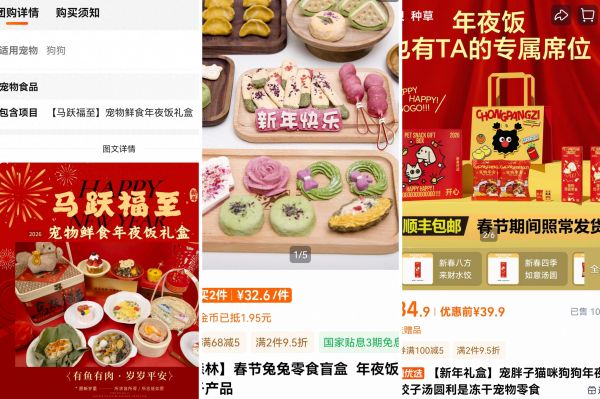 多样形态的宠物年夜饭、新年礼盒。 电商平台截图
