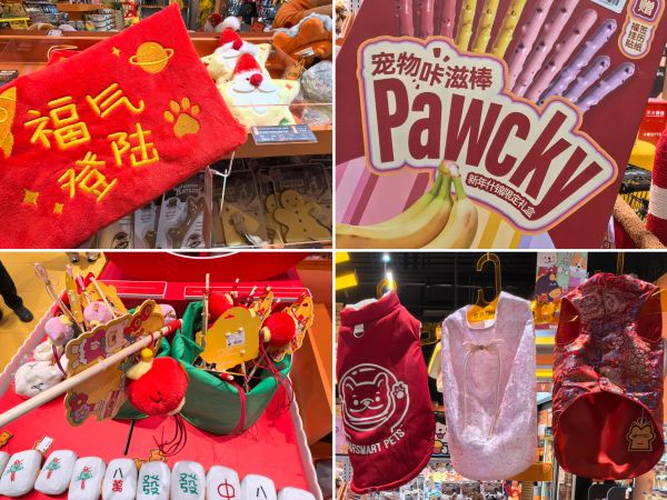 新年主题的宠物玩具、宠物服饰、宠物零食。 新京报记者 王思炀 摄