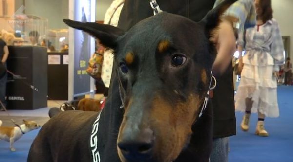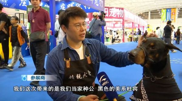 参展商:“我们这次带来的是我们当家种公—美系杜宾,还带了一只红色的美系杜宾,还带了一只英国可卡。除了我们自己来,我们还带来了一些宠物食品和宠物零食。”