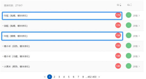 年糕主要由糯米制成,其中的淀粉非常容易被消化吸收,导致餐后血糖迅速升高。对于需要控制血糖的朋友来说,这确实是个挑战。在中国食品发酵工业研究GI营养工作室2718种食物中,年糕的升糖指数(GI,数值越高,升糖速度越快)名列前茅,比葡萄糖(GI为100)还要高。