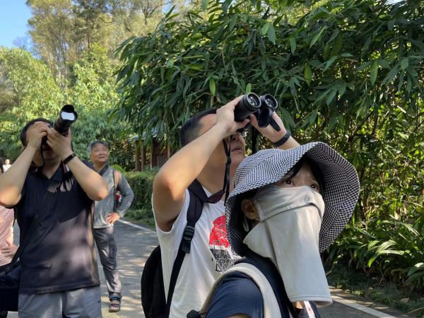 中秋国庆长假期间,一群观鸟达人在福建省观鸟协会志愿者的组织带领下,到福州市森林公园里与自然“约会”。他们年龄跨度大,有退休老者也有小学生;他们的装备不同,有价格不菲的单反相机和长焦镜头,也有普通的双通望远镜;但相同的是,他们对观鸟活动的热情。