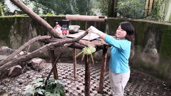杨慧强说,让动物吃“粽子”,看似是完全从人类的视角来让动物体验一把人类的民俗,但其实对动物也有好处。有这些“粽子”制造简单的进食障碍,可以产生有益的刺激,发展动物行为的多样性,避免刻板、不自然的表现,比如只会在固定投喂点等待喂食、对活跃的猎物缺乏兴趣等。