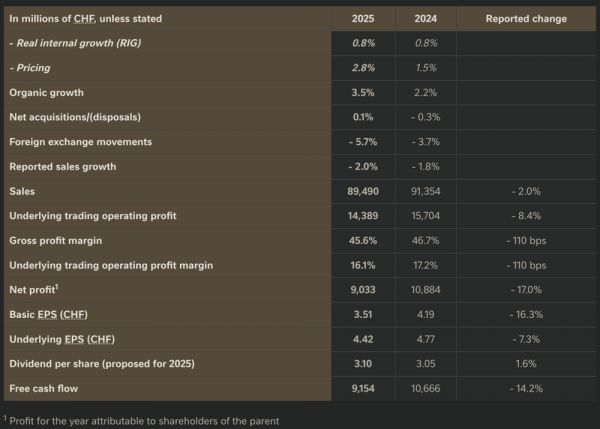 从数据看,雀巢的2025年显得较为沉重。