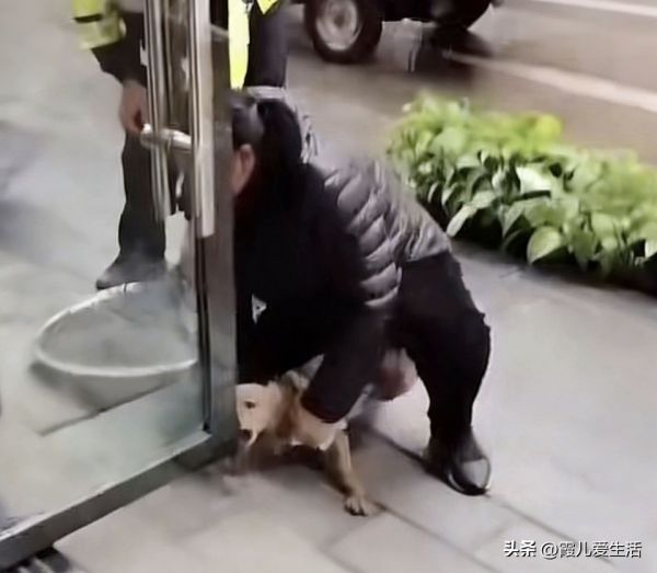 主人急得声音都喊沙哑了,拼命想把小狗放出来,可保安就是不肯松手,双方一直僵持拉扯。