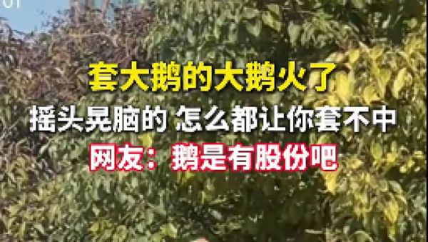 套大鹅的大鹅火了,摇头晃脑“走位” 怎么都套不中,老板打出招牌:套中一次奖励100元,不给鹅