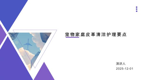宠物家庭皮革清洁护理要点演讲人2025-12-01目录壹贰叁肆伍陆柒宠皮日深常长况定物革常度见期制制家材清清问保定保庭质洁洁题养计养皮特维与诊策划方革性护保断略案清分要养与与洁析点方处建根护法理议据理使要用点情-01宠物家庭皮革清洁护理要点O NE宠物家庭皮革清洁护理要点摘要本文系统阐述了宠物家庭皮革清洁护理的全面要点,从皮革材质特性分析入手,详细探讨了日常清洁维护、深度清洁方法、常见问题处理以及长期保养策略文章采用总分总结构,通过递进式逻辑展开论述,旨在为宠物家庭提供科学、实用的皮革护理指导全文共分为五个部分皮革材质特性分析、日常清洁维护要点、深度清洁与保养方法、常见问题诊断与处理、长期保养策略与建议最后对全文核心思想进行精炼概括02皮革材质特性分析O NE1皮革基本分类皮革主要可分为以下几类-全粒面皮革保留完整天然粒面,透气性好,耐久性强-修面皮革去除天然粒面后人工-分割皮革由皮革下层压制而成,压制,表面均匀但透气性较差成本较低但耐用性相对较差-再生皮革由皮革边角料压制而成,环保但性能远不及天然皮革2皮革物理特性天然皮革具有-吸湿性能吸-透气性天然毛孔允许空气以下特性收并释放水分,流通,但易受保持湿度平衡污染堵塞-延展性受热-化学反应性对酸碱、溶剂或受压时会产等敏感,易发生微小形变生化学损伤3宠物影响因素132宠物对皮革的影响主-唾液腐蚀特别是酸-爪子抓挠造成物理要体现在碱度较高的尿液和唾损伤和边缘磨损液45-毛发附着影响清-温度变化宠物体洁并可能导致皮革发温可能加速皮革老化霉03日常清洁维护要点O NE1清洁工具选择-软毛刷用于清-宠物专用清洁剂除表面灰尘和毛温和无刺激,专发为宠物环境设计日常清洁应使用-微纤维布吸水-喷雾瓶控制液专用工具性强,不易损伤体用量,避免过皮革表面度浸润2清洁频率建议根据宠物活动量和环境条件,建1议-轻度使用每周清洁1-2次2-重度使用每天清洁关键部位3-潮湿环境增加清洁频率至每日4-季节变化冬季减少频率,夏季5增加3正确清洁步骤010203标准清洁流程包