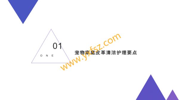 5.自然风干避微湿布轻柔擦拭干布吸除多余水免暴晒或热源烘表面分烤4清洁剂使用规范12-稀释比例严格按照产品宠物专用清洁剂使用要点说明调配34-测试反应先在隐蔽处测-避免接触远离宠物眼睛试皮革反应和口腔5-残留清理清洁后确保无化学残留04深度清洁与保养方法O NE1深度清洁时机建议在以下情况实施深度清洁1深度清洁时机-半年或季度一次形成固定保养周期010203-出现顽固污渍如-季节更换前后适-更换宠物后清除宠物粪便、食物残应环境湿度变化前宠物的气味残留留2专业清洁流程132深度清洁包括以下步
