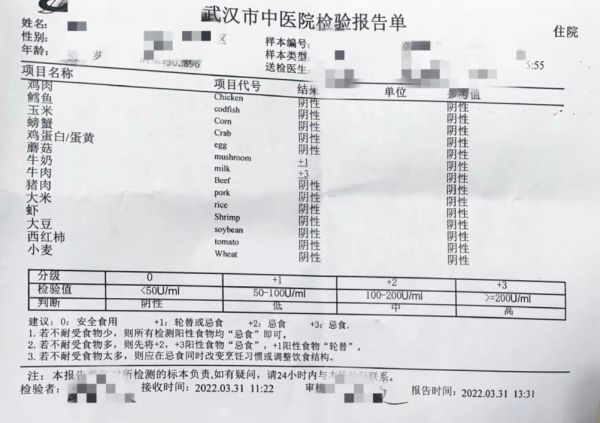 医生接诊后,根据李先生症状,建议行血清过敏原筛查14项,结果显示,李先生对鸡蛋不耐受级别达到了+3。