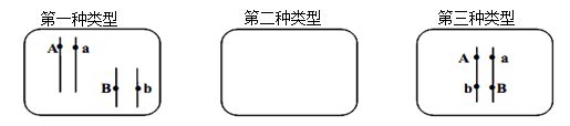 ①实验假设:这两对基因在染色体上的位置有三种类型,已给出两种类型,请将未给出的类型画在方框内(如图所示,竖线表示染色体,黑点表示基因在染色体上的位点)。