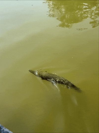 想这条在玉龙湖潜藏2年多的鳄雀鳝,估计已经把湖里面的大鱼小鱼给嚯嚯完了。