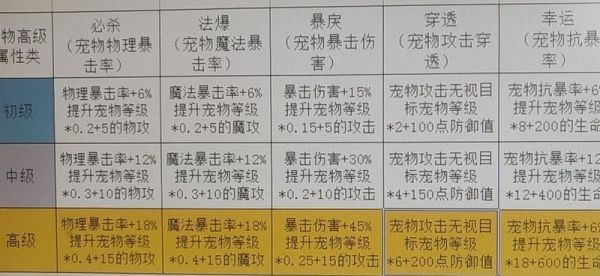 大幅提升宠物伤害,附带解控效果及概率格挡暴击。