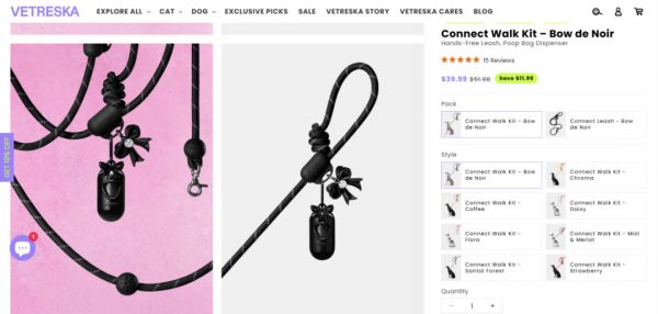 正是这种对情绪价值的精准捕捉,让Vetreska拥有了极强的定价权。其代表性产品狗狗牵引绳,凭借高饱和色彩设计与同色系粪便袋收纳包的巧思,售价达39.9美元,成功避开低价内卷。