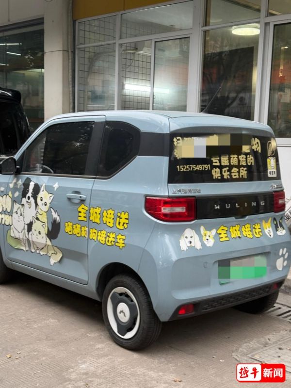 在平江路与秦望路交叉口的另一家宠物店,记者看到数只狗狗正排队享受“洗剪吹”一条龙服务。店外停放的一辆车身印有“宠物专车 全城接送”字样的车辆格外醒目。