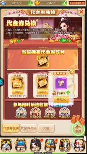 积极参与个人BOSS、全民BOSS等玩法收集碎片,兑换代金券和稀有道具,用于提升角色和宠物。