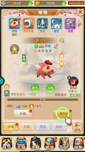 优先升级初始宠物,宠物战力提升显著,可通过野外捕捉和升级材料快速培养。
