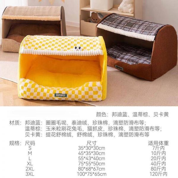 使用技巧:冬季可内置宠物电热毯,夏季拆除顶盖即变凉垫