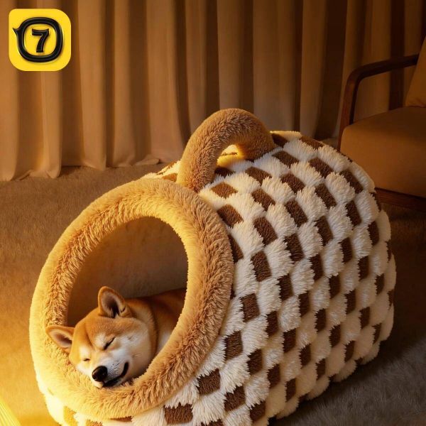 9️⃣ 洽苒小型棋盘格窝拿铁咖S号是公寓养宠族的福音,小巧尺寸不占空间却功能齐全。专为8斤以下宠物优化设计,每个细节都体现日式精致。