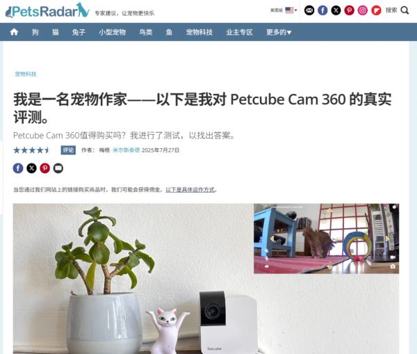 专注美国市场的宠物测评博客PetsRadar,则以真实、专业的评测著称。2025年,该博客上线针对Petcube 360°监控的实测内容,配有监控实拍视频,并以“高性价比之选”作为结论,有效推动了产品曝光。
