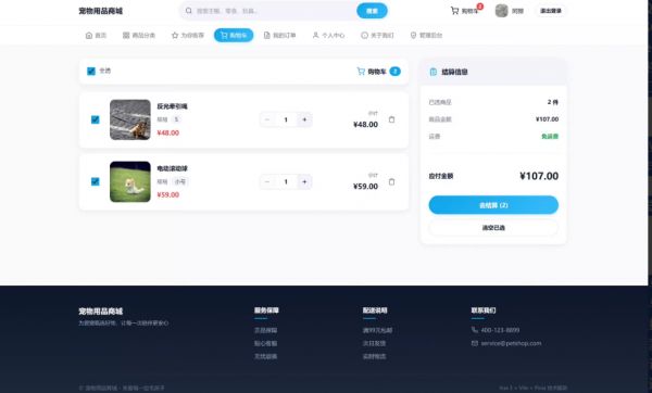 ●购物车管理:支持加购改数与批量勾选。