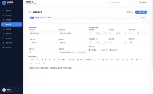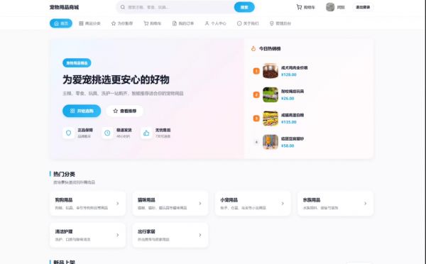 基于上述背景,本课题拟设计并实现一个基于Python+Flask的宠物用品 商城 系统。该系统将聚焦宠物消费场景的特殊需求,通过智能化的商品分类与个性化推荐算法,帮助用户快速定位适合自家宠物的用品。系统将集成用户管理、商品展示、购物车、订单处理、在线支付等核心电商功能,同时探索基于用户行为数据的推荐机制,提升商品曝光效率与用户购物体验。这一研究不仅是对电商系统开发技术的综合实践,更将为宠物消费市场的数字化转型提供有益探索,具有显著的社会价值与商业潜力。