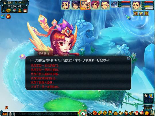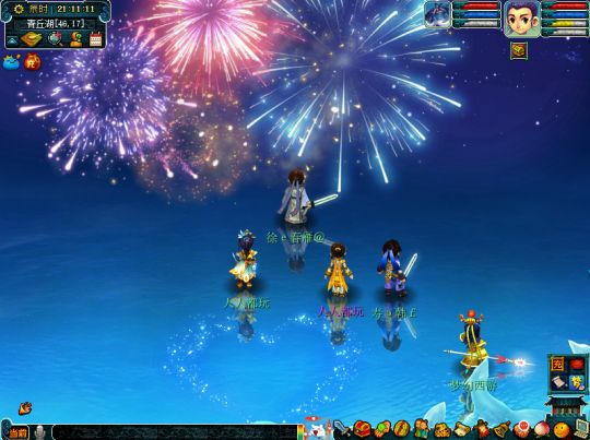 玩家可以在青丘月镜湖空闲的时间里预定一场烟花大会,并且邀请亲朋好友一同观赏。